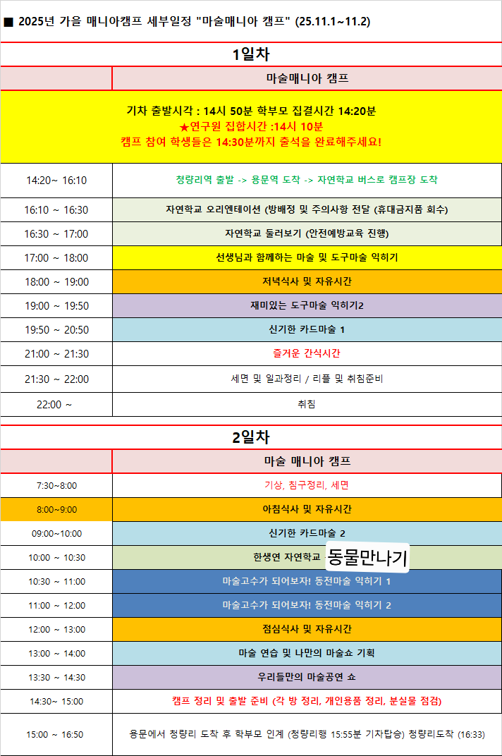 [가을캠프]11월1일-2일 마술 매니아 캠프 공지